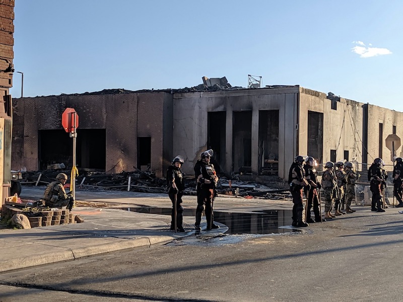 Slightly after this time, only a day or two following the lifting of curfew, my mother insisted the family accompany her on a biking excursion across the city down Lake Street. For those less up to date on their geography of the Minneapolis area, Lake Street had been one of the centres of the rioting resulting from the killing of George Floyd at hands of police officers. We set out around mid-morning, just a slightly windy summer day and sunglasses blocking the blindingly pleasant light. Having lived outside Minnesota for the majority of my life, I have never really known the streets around me, let alone comprehended the arbitrary distance that is a ‘mile’. Thus, after less than fifteen minutes from home when we had crossed the bridge over the Mississippi onto Lake Street, I was rather nonplussed. I had not realised that the events which I, and much of the nation, had been viewing from a screen, were taking place so close to where I sat oblivious.