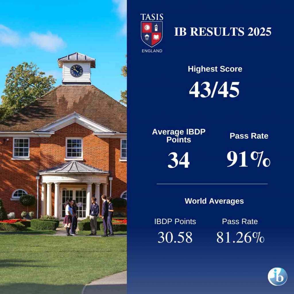 TASIS England Celebrates IB Results for the Class of 2025 Posted on 10th Jul 2025 in Results TASIS England is delighted to announce the 2025 exam results for its International Baccalaureate (IB) students.