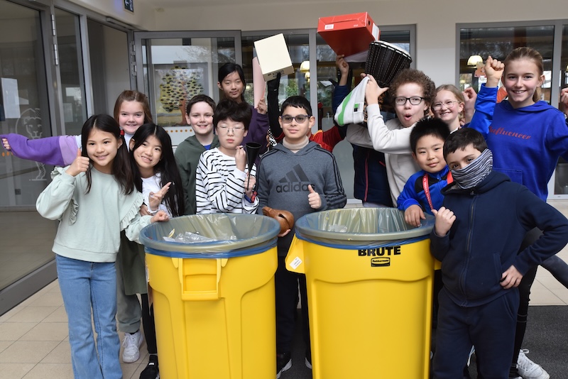 Visitors to the International School of Düsseldorf (ISD) Elementary School on any given Friday afternoon may be greeted by the sound of drums, maracas, and song, as the grade 4 and 5 students perform their weekly recycling ritual, Yellow Bin Pick-Up Time (YBPT).