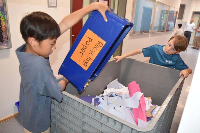 While the idea is simple - children separate all waste in the classrooms on a daily basis, empty the recyclable waste into larger bins once a week, and bring them to the front of the school where the Hausmeisters move the bins outside for collection - the programme has multiple benefits, not just for the environment, but also for the school, the Hausmeisters, and the students themselves.